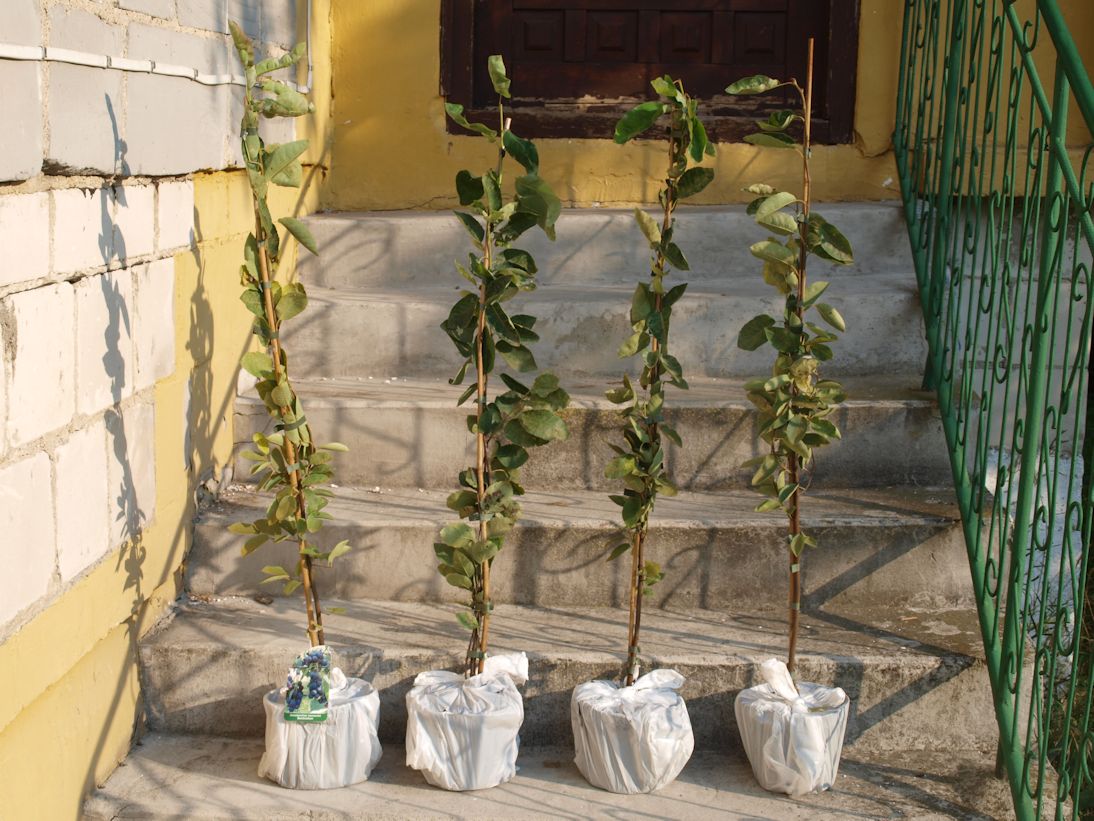 | 2020W 2020 r. zbierano wszystkie owoce na czas. Cieszyły się dużą popularność w rodzinie. Dlatego kupiono cztery nowe sadzonki. Otrzymano je dnia 12-IX-2020 r. od dostawcy Borysławice. Dwie oddano rodzinie i pozostałe dwie sadzono na południowym sadzie.