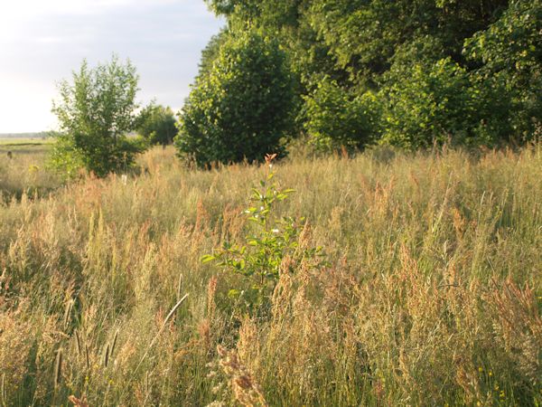 | 2021Z powodu ważnych spraw rodzinnych, ogród nie był pielęgowany do połowy roku. Trawa i chwasty rosły bardzo wysoko ale sadzonka rosła jeszcze wyżej. Wysoka trawa była dla niej nawet korzystna, ponieważ chroniła od suszy. Na zdjęciu z dnia 16 czerwca widać tę świdośliwę na środku.