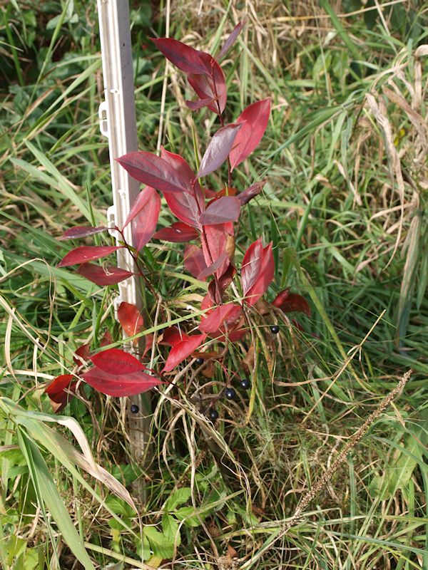2019Dziesięć sadzonek otrzymano dnia 23-IX-2019 r. od dostawcy Florexpol i sadzono je na pustych miejscach po dereniach wzdłuż alejki aby tworzyły klasyczny bindaż. Oprócz zamówionych roślin, dostawca przysłał cebulki narcyzów, rękawice robocze, oraz informator o pracach w ogrodzie jesienią (zob. zdjęcie). Miesiąc później, 27 października, niektóre sadzonki miały intensywnie purpurowe liście. |