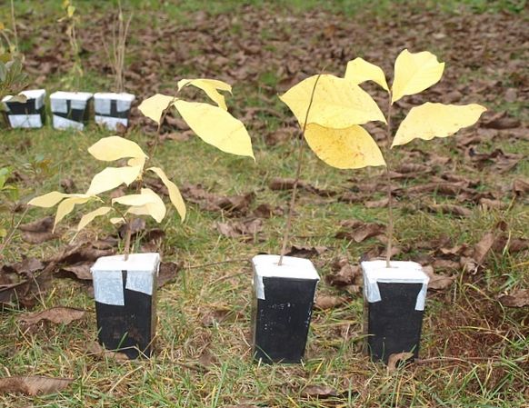 Otrzymaliśmy te nowe sadzonki 26 października. Sadziliśmy je na bezpiecznym miejscu: pod dużym orzechem na podwórku, gdzie był warzywniak poprzednych mieszkańców. |