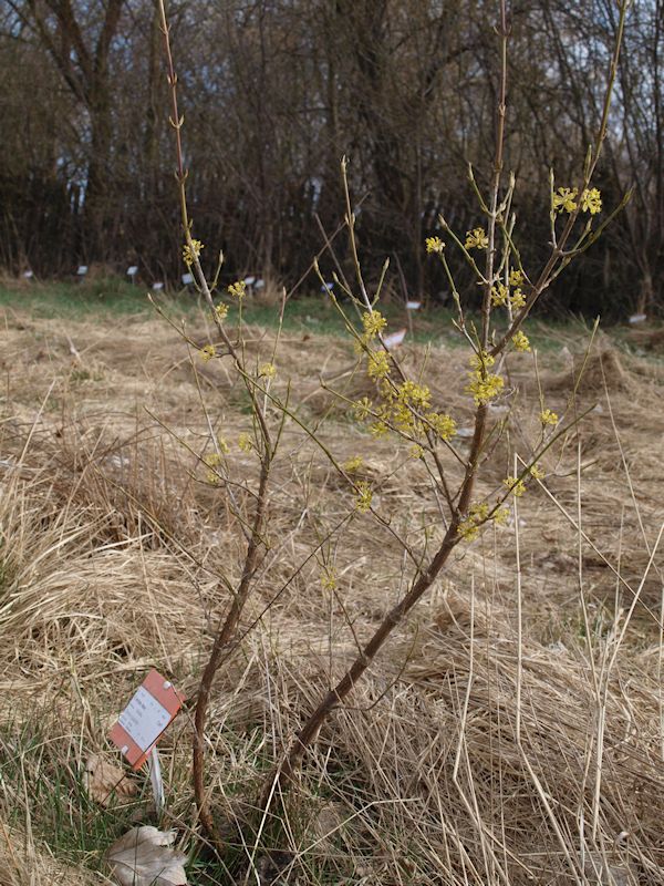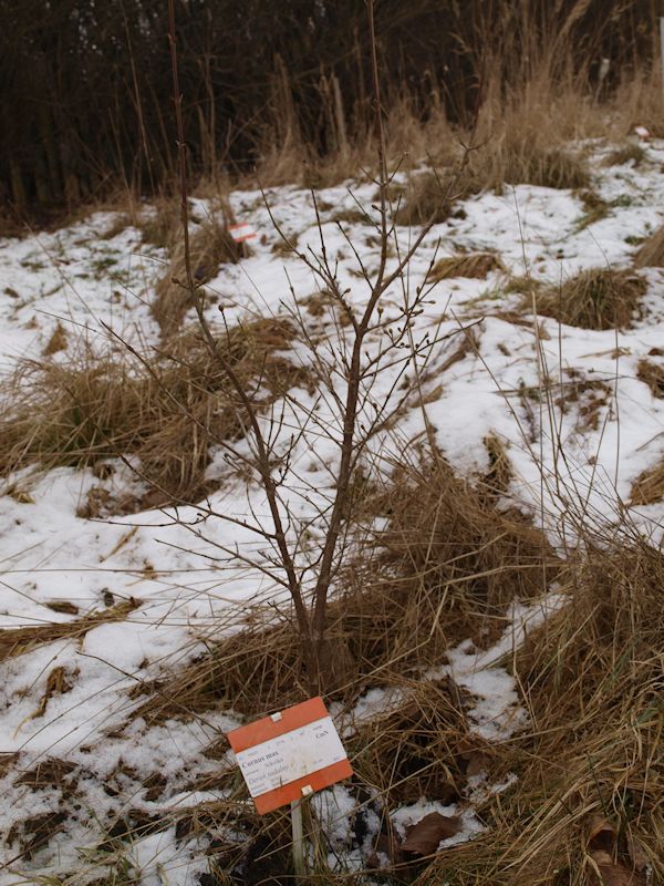 2019-2021Sadzonki rosły dobrze, południowa roślina szeroko, północna wysoko. W lipcu 2020 r. miały odpowiednio 65 i 80 cm wysokości i w sierpniu 2021 r. 70 i 105 cm. | 2022Już 15 lutego, rośliny wschodziły w wegetacji. Południowa sadzonka.