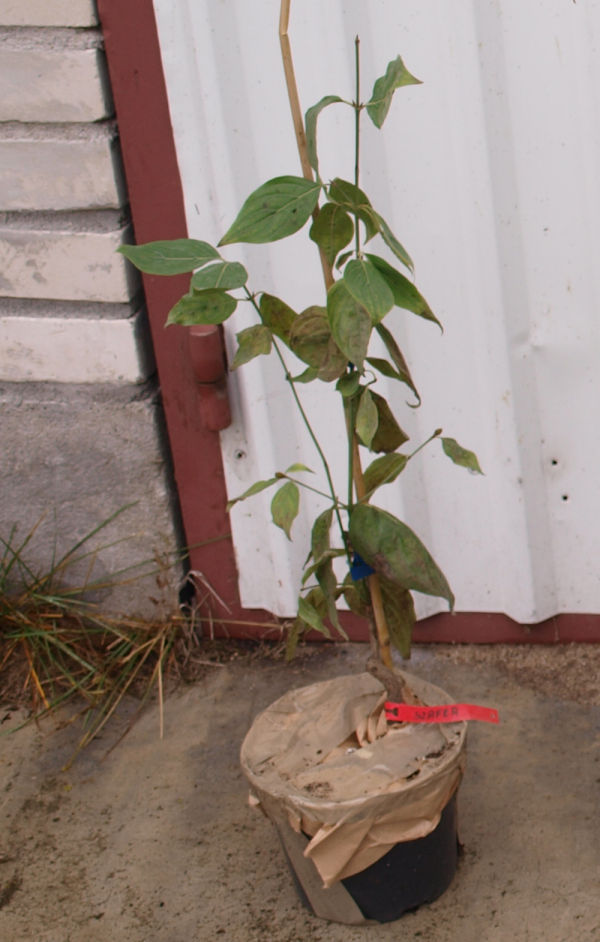 2015Jedną sadzonkę otrzymano dnia 20-X-2015 r. od szkółki Carya i sadzono ją na południowo zachodniej strony bindażu.