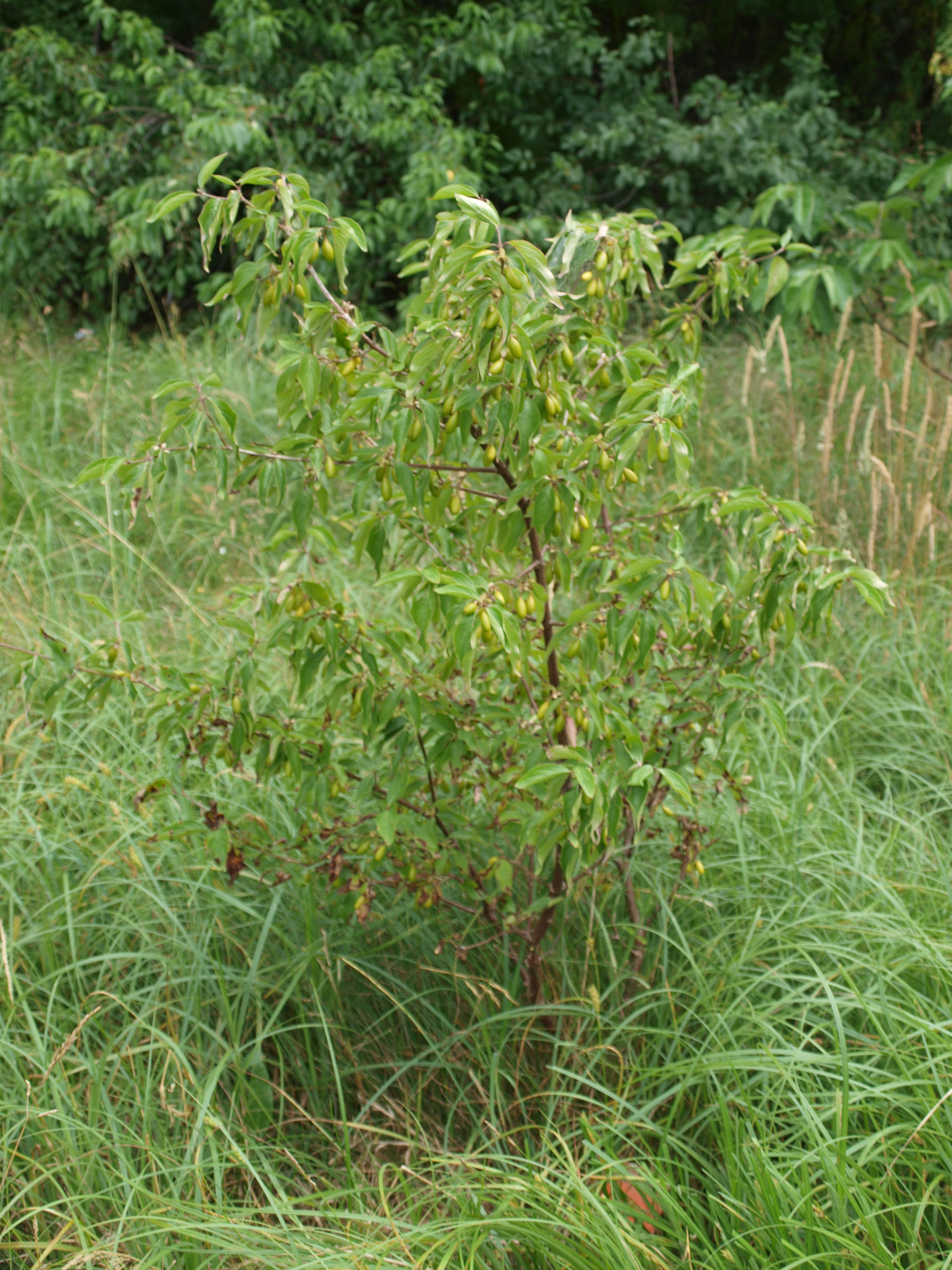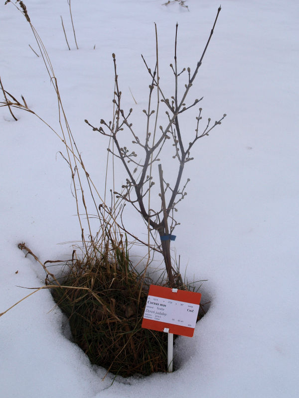 | 2019-2021Dereń rósł stosunkowo wolno ale owocował dobrze. W lipcu 2020 r. miał 80 cm wysokości i w sierpniu 2021 r. 120 cm. Zdjęcie z dnia 26 II 2021 r.