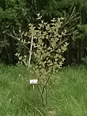 Roślina przestała rosnąć. W sierpniu nadal miała 120 cm wysokości. Z powodu długotrwałej suszy owoce nie były soczyste. | 2023-2024Dereń nie rósł ale owocował dobrze. Na zdjęciu z 22 kwietnia 2024 r. widać, że końce gałęzi pozostały nagie.