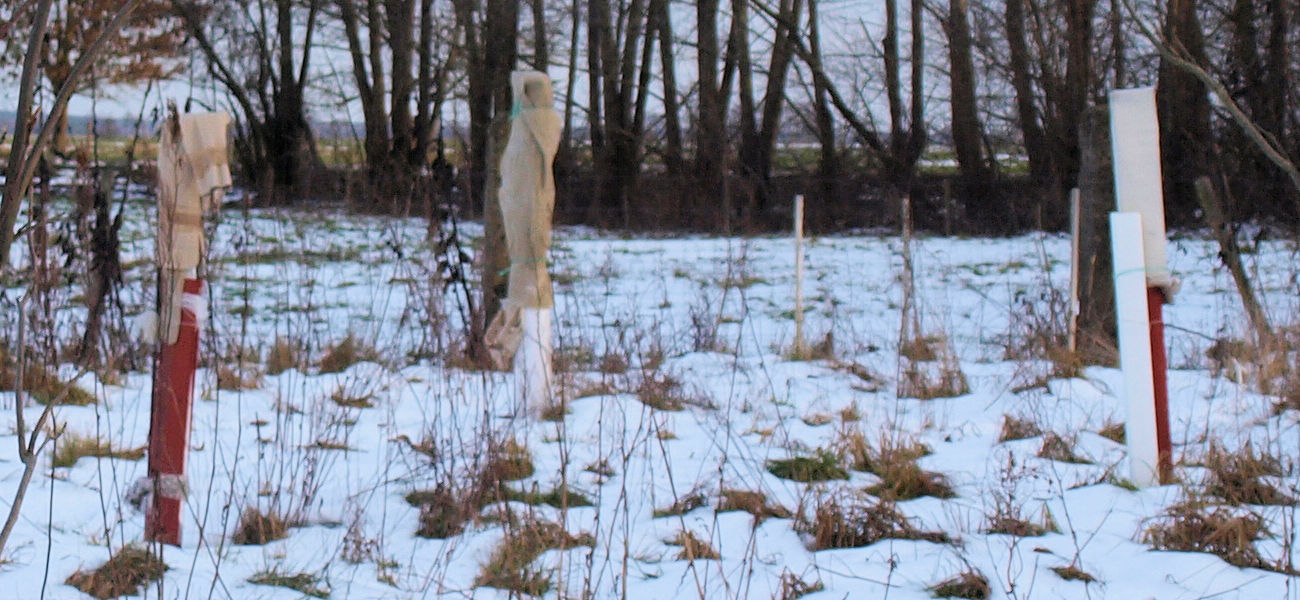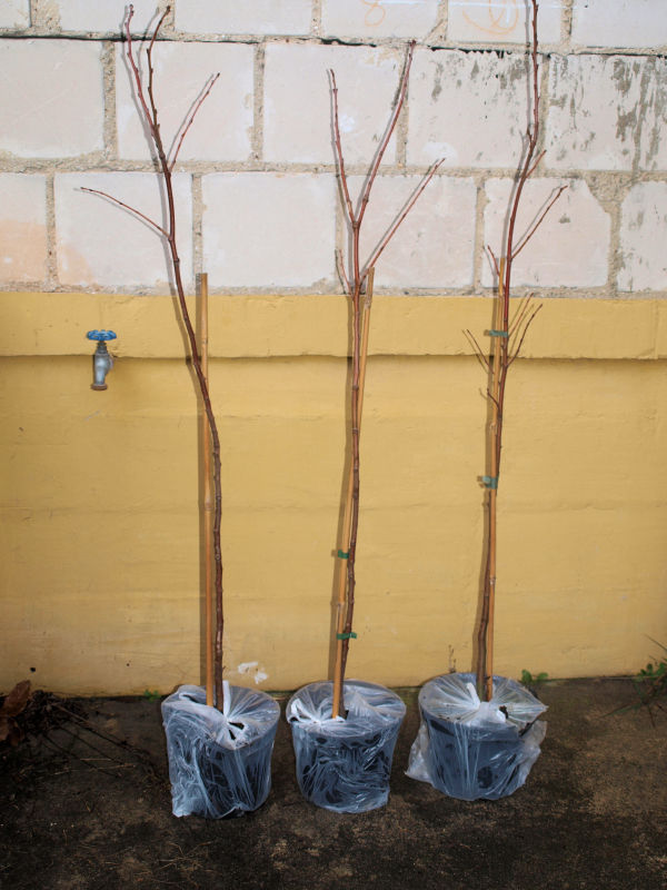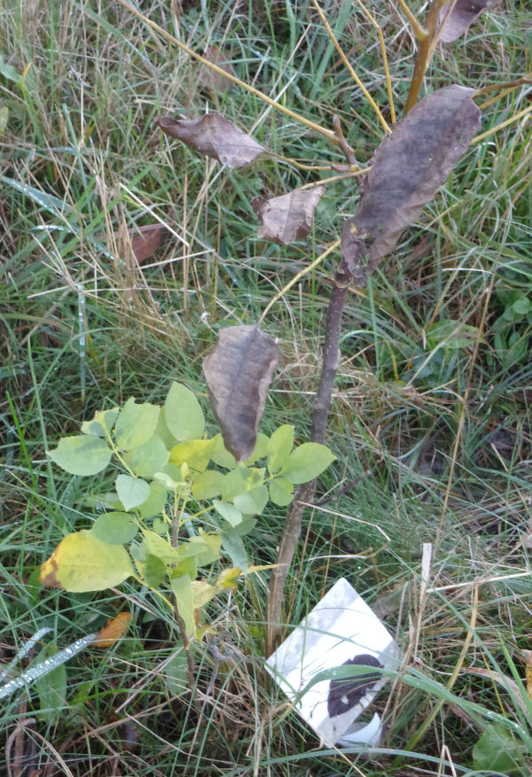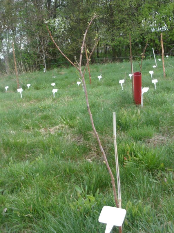2022Trzy sadzonki otrzymano dnia 10-XI-2022 r. od dostawcy OGRODinternetowy. Sadzono je, otoczono grubą warstwą materiału chroniącego od mrozu, na północnej części sadu orzechów.
