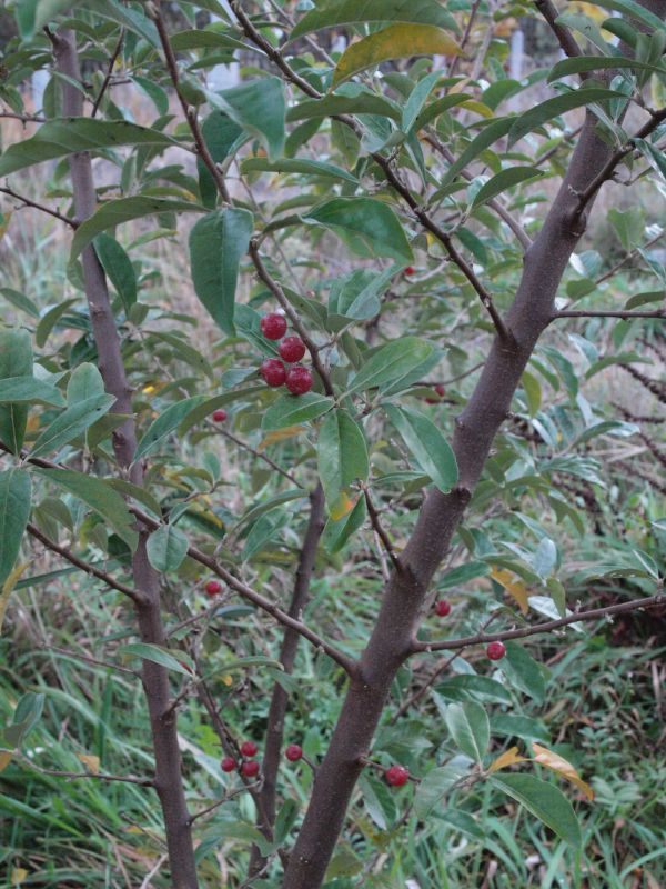 2017Dwie zachodnie sadzonki nie przeżyły zimę.2018Powodzie oliwnikom Red Milan nie szkodziły. | 2019Krzewy tworzyły luźne korony, jak widać na zdjęciach wschodniej sadzonki, robione wiosną (9-III)