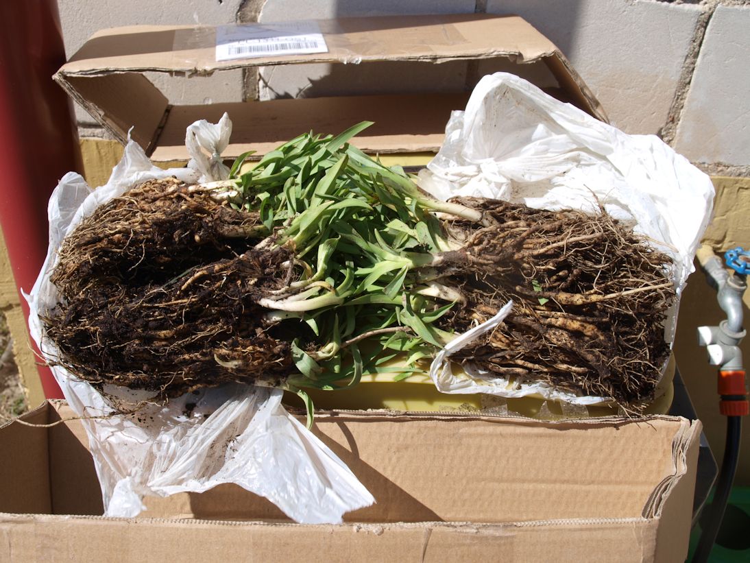 202030 kłącz zamówiono od dostawcy Floramarket. Otrzymano je 22-IV-2020 r. i sadzono 6 sztuk w rabacje przy wzjeździe, 11 w rabacje przy domu a resztę przy północnym szpalerze na polu.