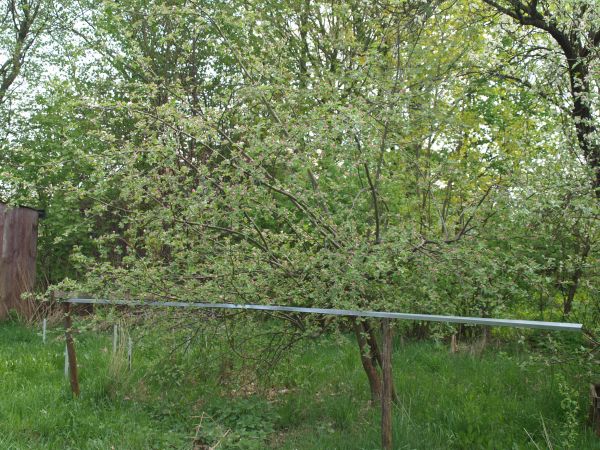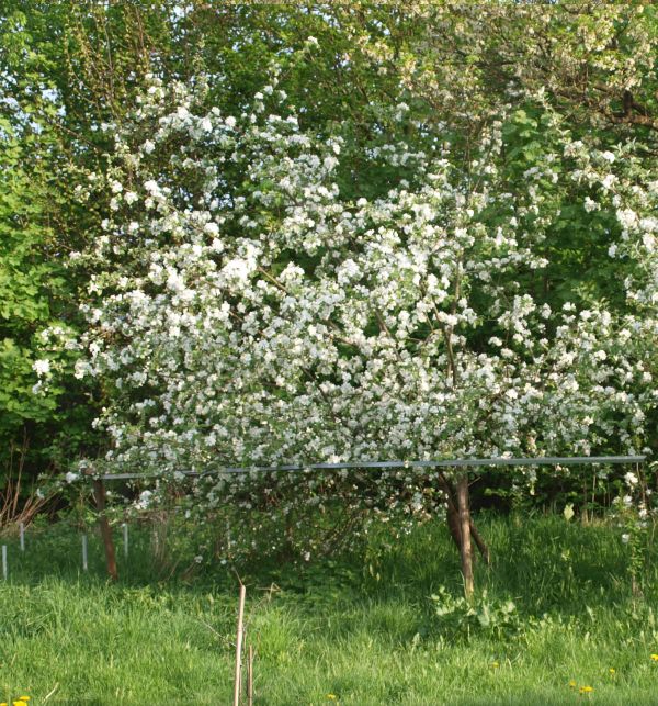 2014Jedna malinówka rosła w starym sadzie na podwórku, kiedy kupiono działkę. Na zdjęciu starego sadu, które zostało wykonane ze wschodu 21 grudnia, drzewo (MdM) znajduje się na pierwszym planie.