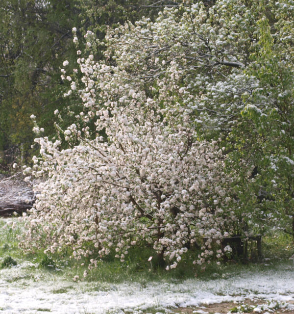 | 2020Papierówka kwitła 12 maja, kiedy padał jeszcze śnieg. Drzewie nic się nie stało.