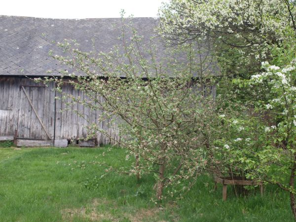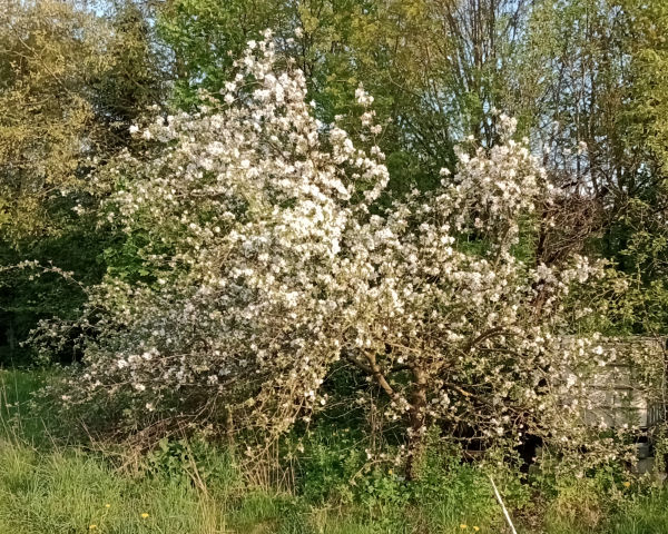 Drzewo owocuje regularnie. Jabłka są smaczne, trochę kwaśne, bardzo dobre na szarlotkę. | Trzy dni później, 2 maja, ładnie kwitła.