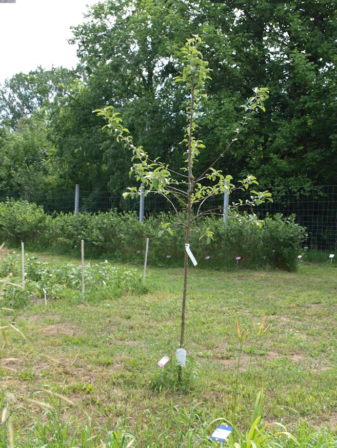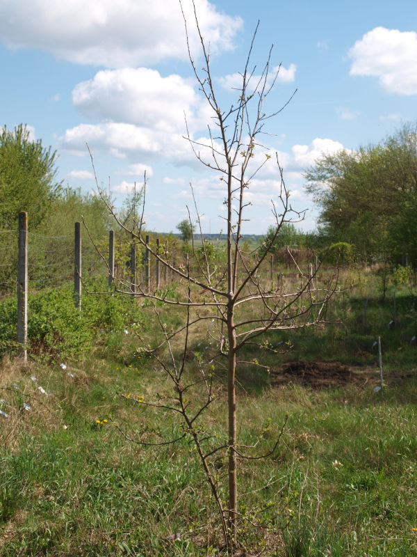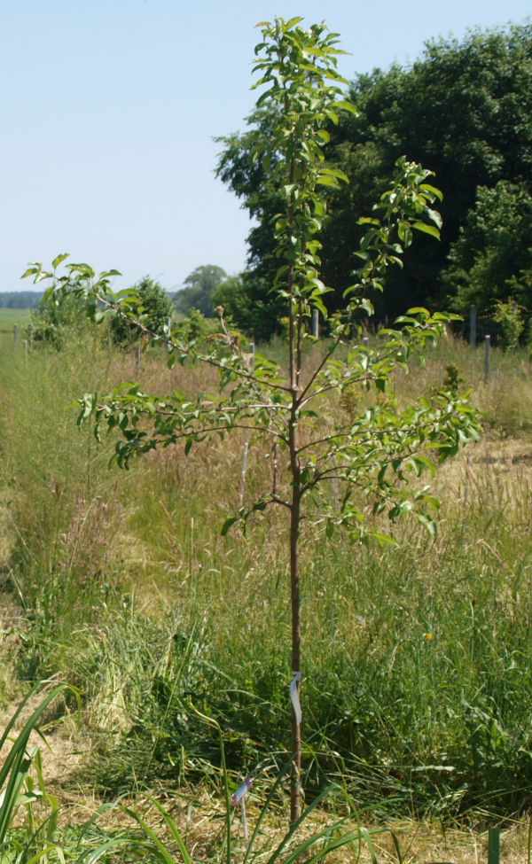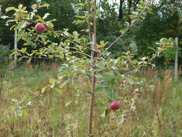 | W sierpniu północne drzewo miało 2,6 m wysokości i południowe 3,1 m. Owocowały po raz pierwszy w tym roku i smak był wspaniały, rzeczywiście tak jak w moim dzieciństwie. Na zdjęciu z 17 września widać północną sadzonkę.