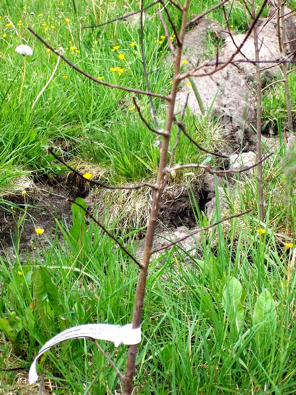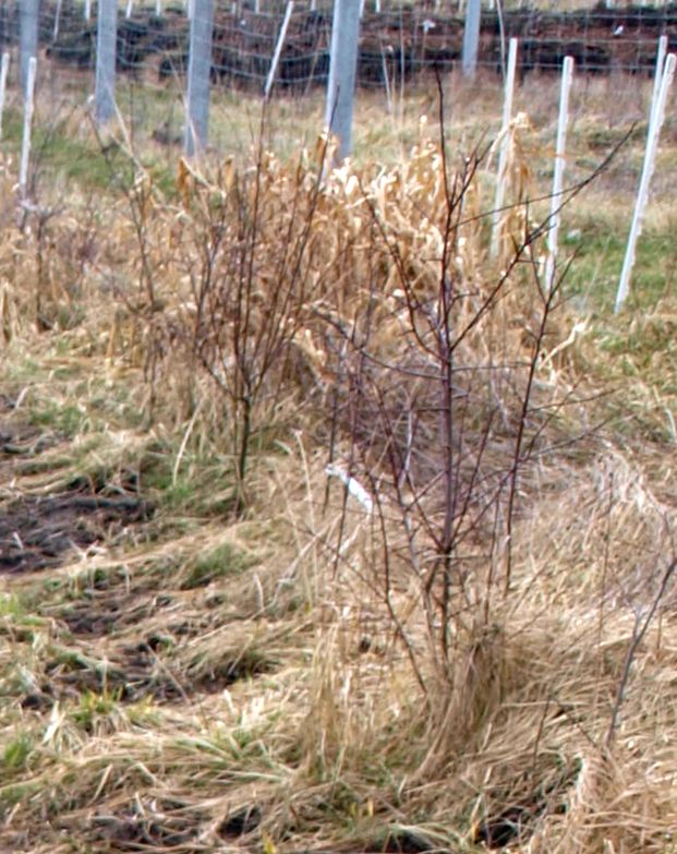 2015Dnia 25 lutego zamówiono 50 sadzonek z gruntu od dostawcy Sadowniczy. 22 kwietnia otrzymano pięć pęczków roślin. Okazało się, że było to 52 sadzonek. 38 sadzono na pole jako część północnego żywopłotu. Pozostałe 14 sadzono na bindaż jako południowy żywopłot. Część sadzonek miała słabo rozwinięte korzenie. Ponadto wiosna była bardzo sucha. Jesienią w północnym żywopłocie pozostało przy życiu 29 roślin, a w południowym – dziesięć. |