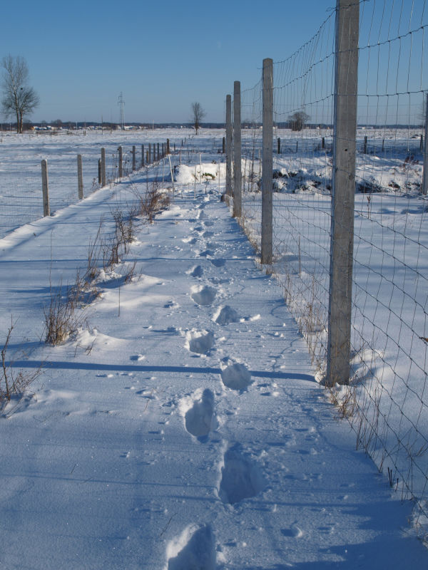 | 2017W styczniu zaczęła się zima. Padał śnieg, a po nim osiem tygodni mrozu. Na zdjęciu z 6 stycznia widać rząd śliwek na lewo.