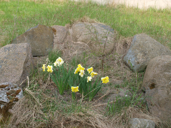 | W tym roku znaleziono samosiejkę w palenisku przed domem. Widać ją na zdjęciu z 1 maja za prawym żonkilem.