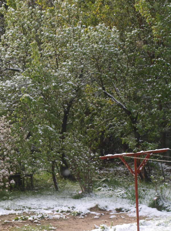 | Pięć dni później, 12 maja 2020 roku, nastąpiły późne przymrozki i padał śnieg. Śliwom jednak nic się nie stało.