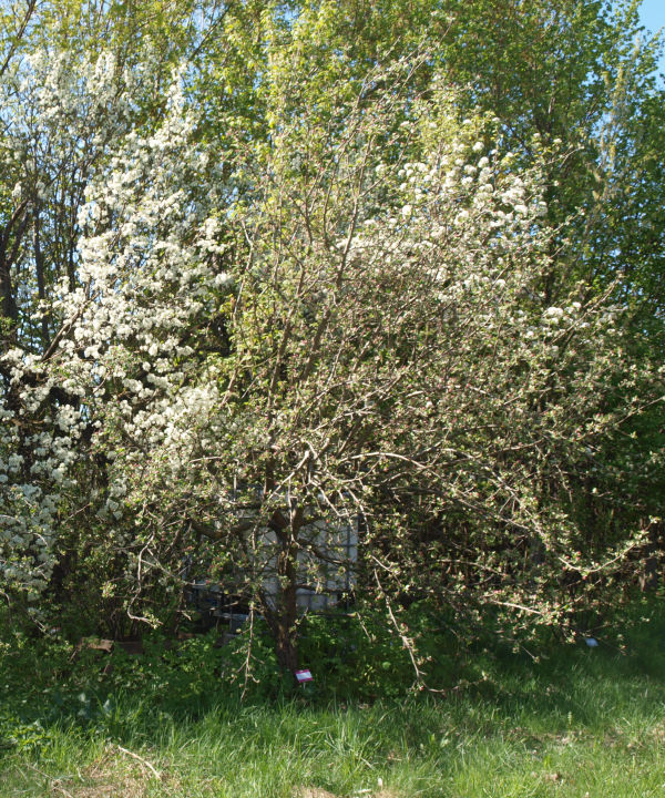 | Stare drzewa miały w sierpniu 4,5 i 5,0 m wysokości; samosiejki mierzyły 2,1 i 2,9 m.2023W tym roku dwa stare drzewa śliwkowe wydały owoce, ale nie dojrzały one. Samosiejka uschła.2024Stare drzewa nie kwitły, a wiele ich gałęzi pozostało nagich. |