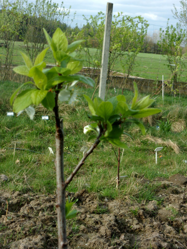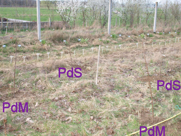 Razem z dwoma sadzonkami odmiany Santa Rosa, sadzono mirabelki (PdM) na środku pola, jak widać na zdjęciu z 29 kwietnia.