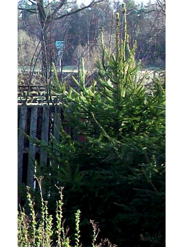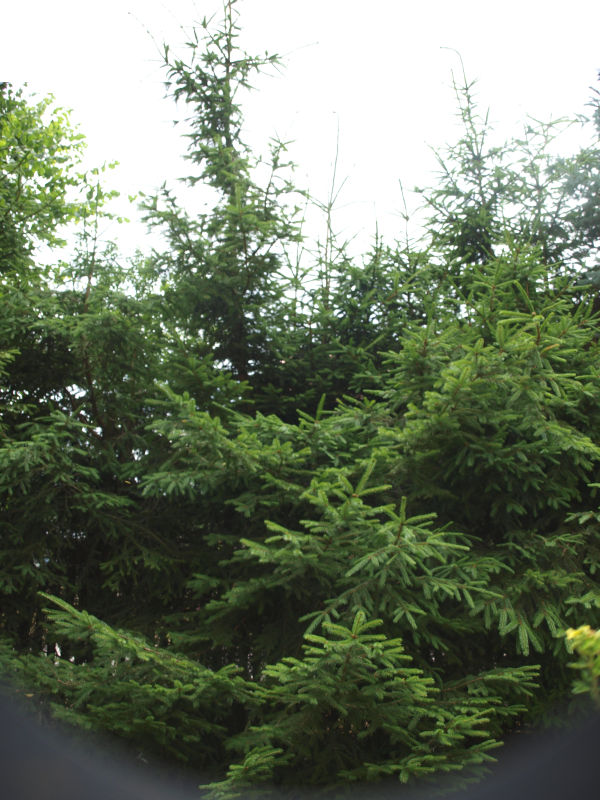 Początkowo nie było wiadomo, z jakich gatunków świerków składa się żywopłot. Teraz pojawiły się szyszki na świerkach białych, co umożliwiło ich determinację. Do tego celu robiono dużo zdjęć szyszek, pniów, igieł i gałęzi. Poniżej widać gałęzie białego świerka.