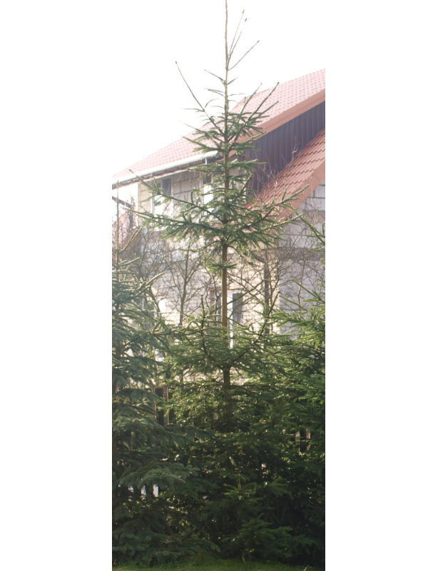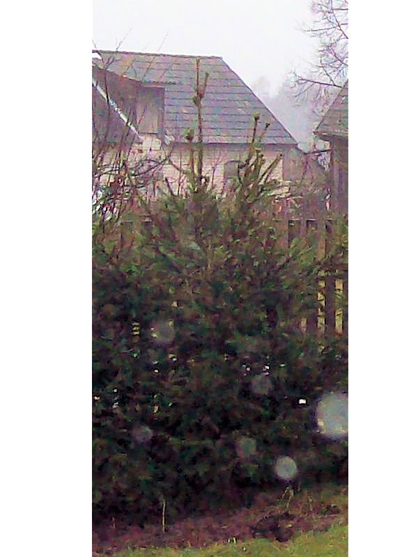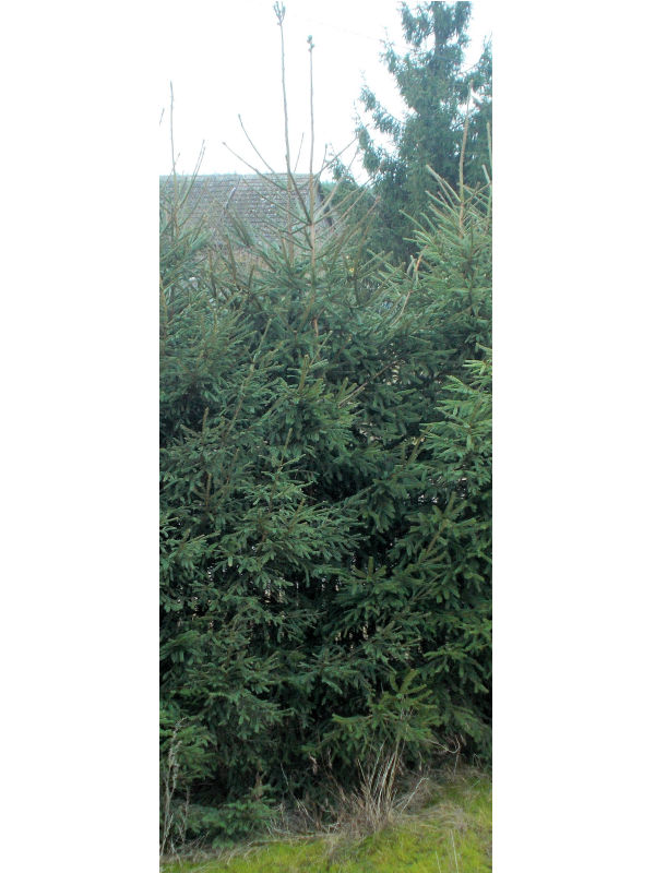 Na stronie Rozpoznawanie iglaków można więcej czytać o tym, jak szukano odpowiedz na pytanie, które to są za drzewa.2019Na wiosnę skrócono świerki na około trzy metry. | 2020Na zdjęciach z dnia 4 stycznia widać, że świerki po skróceniu nadal rosły szybko. Świerk biały przy bramie. | Świerk biały w środku północnej części żywopłotu. To ten sam, który fotografowano w listopadzie 2014 r.