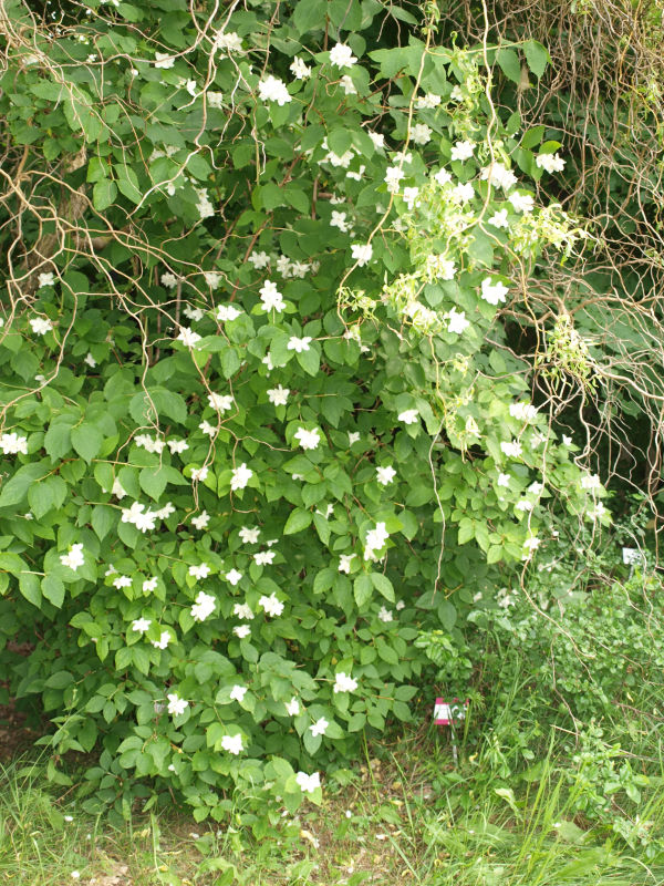 |  | 2022Krzew rośnie dobrze. W sierpniu był 3,0 m wysoki. | 2023Okazało się, że rośnie samosiejka jaśminowca w pobliżu, która mierzyła już metr w sierpniu. | 2024Jaśminowce miały w sierpniu 3,5 i 1,7 m wysokości. |