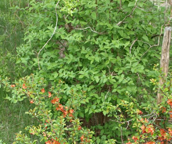 2018Na zdjęciu z 29 kwietnia widać go od zachodu na tle kwitnącego pigwowca.