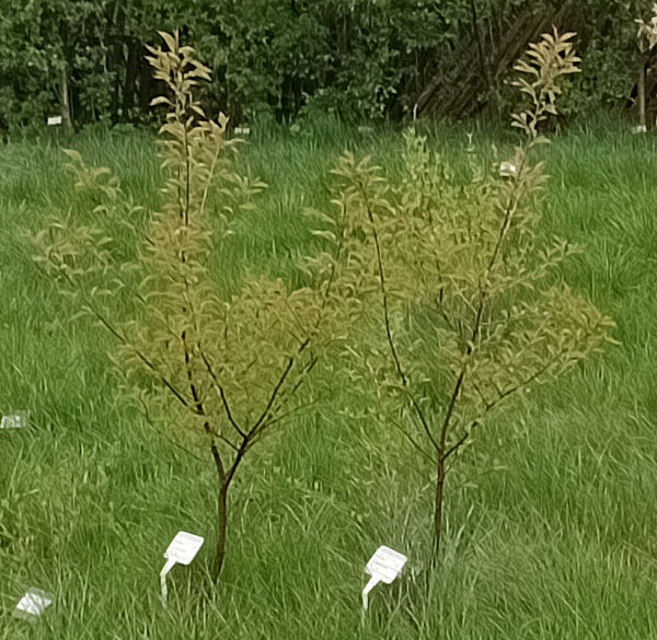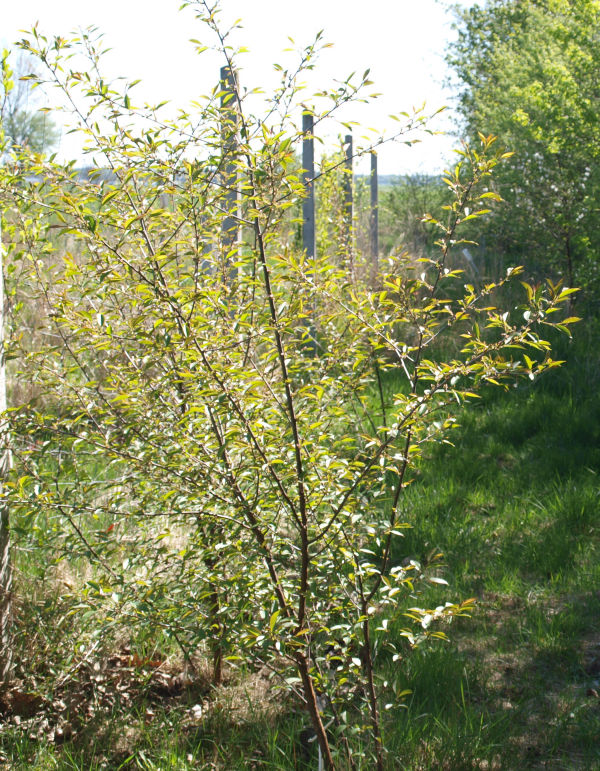 |  Pięć czeremch kwitło w tym roku, cztery owocowało. W sierpniu czeremchy miały od 12 cm do 2,6 m wysokości; 12 czeremch mierzyło ponad metra. | 2024Zdjęcie czeremch w bindaży z 22 kwietnia.