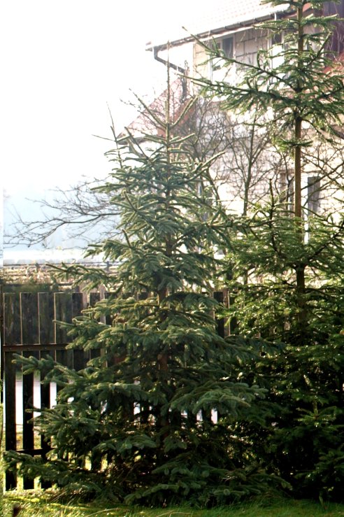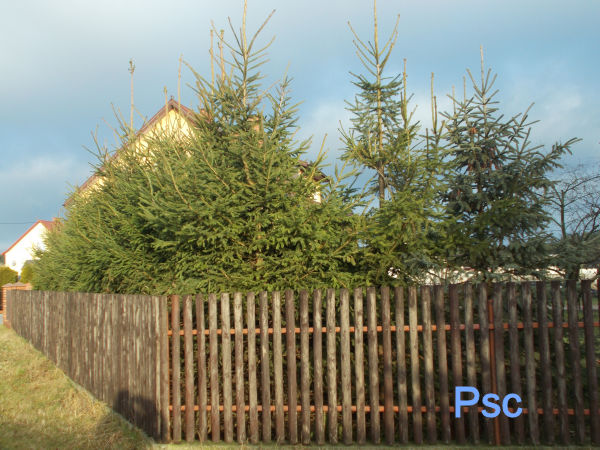 Na stronie Rozpoznawanie iglaków można więcej czytać o tym, jak szukano odpowiedz na pytanie, które to są za drzewa.2019Na wiosnę skrócono świerki na około trzy metry. | 2020Na zdjęciach z dnia 4 stycznia widać, że świerk Schrenka (Psc) po skróceniu sporo przyrósł.