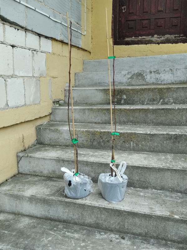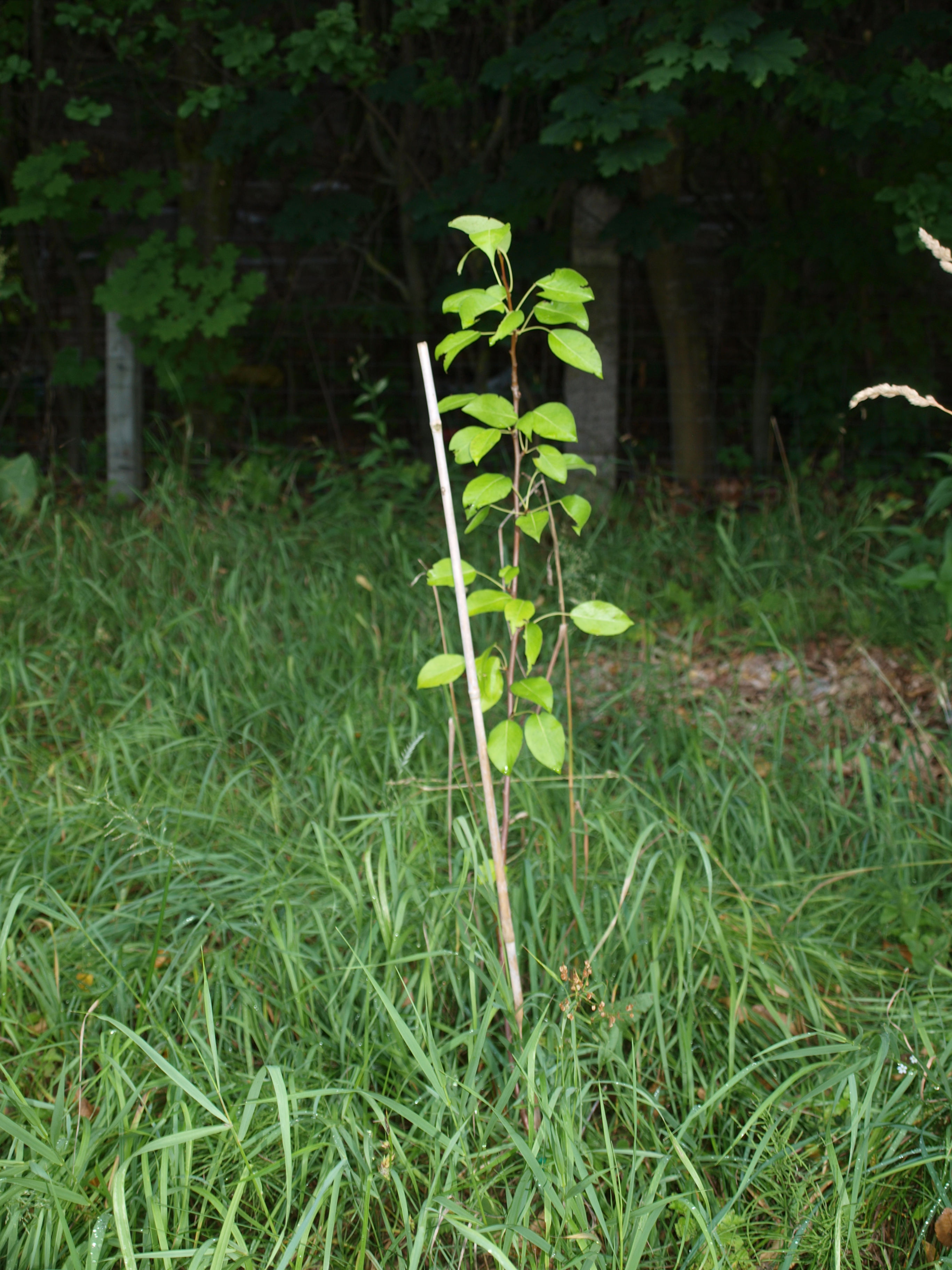 Sadzono je na podwórko w starym sadzie w rządzie czarnych porzeczek. Obie sadzonki przyjęły się. Zachodnia sadzonka mierzyła w sierpniu 60 cm; wschodnia 90 cm. |