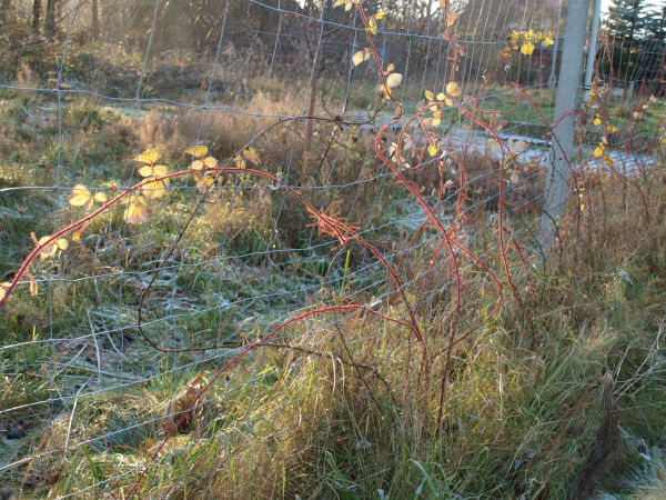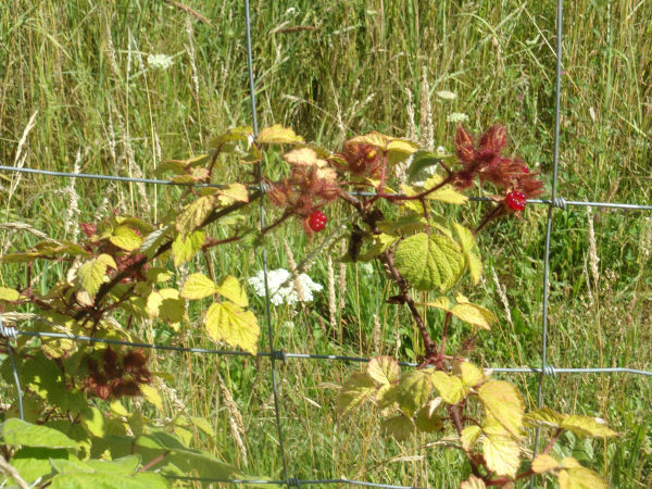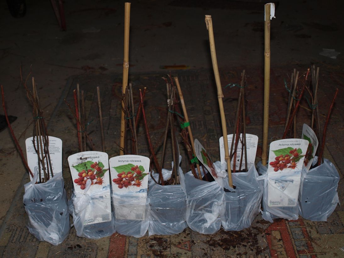 Sadzono je przy nowej części północnego szpalera. Wszystkie rośliny przyjęły się.2021Czwarta sadzonka od zachodu nie wchodziła we wegetację i w sierpniu nie było po niej śladu. Szósta sadzonka od zachodu owocowała już.2022Wszystkie pozostałe rośliny zakwitły w maju, z wyjątkiem szóstej od zachodu. Tworzyły też owoce, które jednak wysychały podczas ekstremalnej suszy. W czerwcu okazało się, że zaginiona czwarta roślina nadal żyła. Jeżyny mierzyły w sierpniu od 30 do 80 cm. Średni wzrost był 50 cm.2023Jeżyny nie kwitły w tym roku. Wschodnia roślina nie chodziła w wegetacji. |
