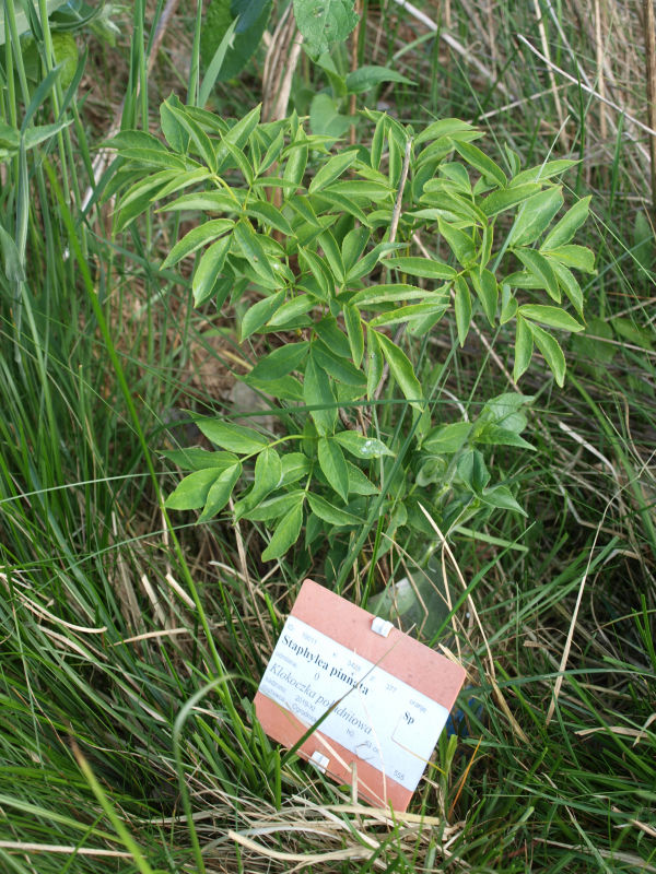 Kłokoczka południowa Staphylea pinnata jest nasza, polska!! Na naturalnych stanowiskach najliczniej występuje w okolicy Przemyśla, podlega ścisłej ochronie. Poza tym, można ją spotkać na południu Europy i w Azji Mniejszej. Krzew do 3-4 metrów wysokości o wyprostowanych pędach pokrytych jasną korą. Mnóstwo białych, lekko zaróżowionych kwiatków zebranych w grona długości do 12 cm ukazuje się w maju. (Podobne do konwalii, dlatego kłokoczka czasem bywa nazywana 'drzewiastą konwalią') Owocami kłokoczki są 4-centymetrowe, jasnozielone torebki z jasnobrązowymi 8 mm średnicy nasionami. Bardzo dekoracyjne, opadają trochę po opadnięciu liści. Dawniej kłokoczka była uważana za roślinę magiczną, otaczana na wsi kultem. W niektórych rejonach była przy domu obowiązkowa - chroniła przed ogniem, urokiem, zarazą i gradobiciem. Używano jej w obrzędach religijnych, z nasion (błyszczące i bardzo twarde, przez wiele lat nie zmieniają koloru) wyrabiano różańce. Prażone nasiona są jadalne i smaczne - smakują jak pistacje. W Niemczech można kupić kłokoczkowe nalewki i likiery. uprawa: Odporna na suszę, może rosnąć na stanowiskach słonecznych lub w cieniu. Dobrze rośnie również na glebach płytkich, skalistych. Nie choruje, szkodniki jej zjadają.