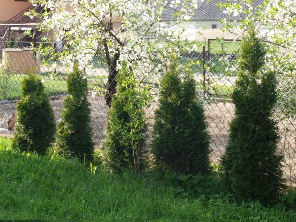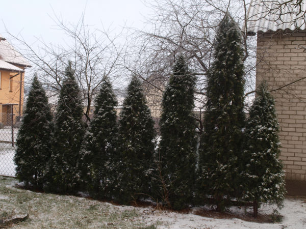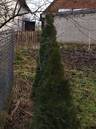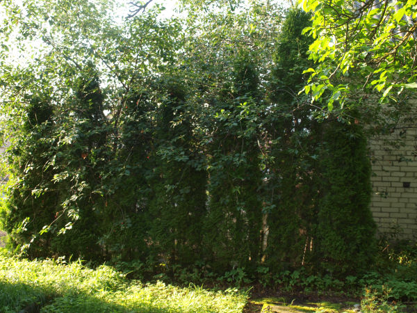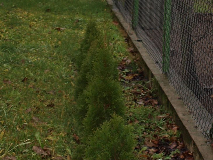 2014Siedem nie dawno sadzonych żywotników rosło na północnej granicy podwórka, kiedy kupiono działkę. Zdjęcie od wschodu z 7 listopada.