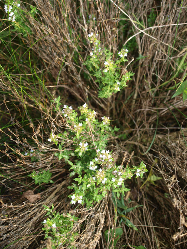 2017Nasiona tymianku kupiono w kwietniu 2017 r. na małym rynku w Ostrołęce. Wyrosły w pięciu doniczkach P7 na parapecie w domu.2018Na wiosnę 2018 r. stawiono te doniczki razem przy filtrze wody na polu. Tymianek rósł tam dobrze.2020Obok filtra wody założono ogród skalny, a tam posadzono krzewy tymiankowe. Cztery krzewy zakwitły. |