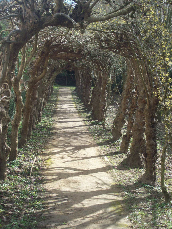 Z obydwie strony alejki sadzono tu drzewa na sad; na jednej połowie, mianowicie na wschód od zakrętu, są to różne drzewa orzechowe: leszczyny, orzechy włoskie i czarne, pekany, kłokoczki i kasztany jadalne. W zachodniej połowie posadzono dość rzadkie drzewa o miękkich owocach jak: uszlachetnione derenie, świdośliwy, hebanowce, nieszpułki i morwy.