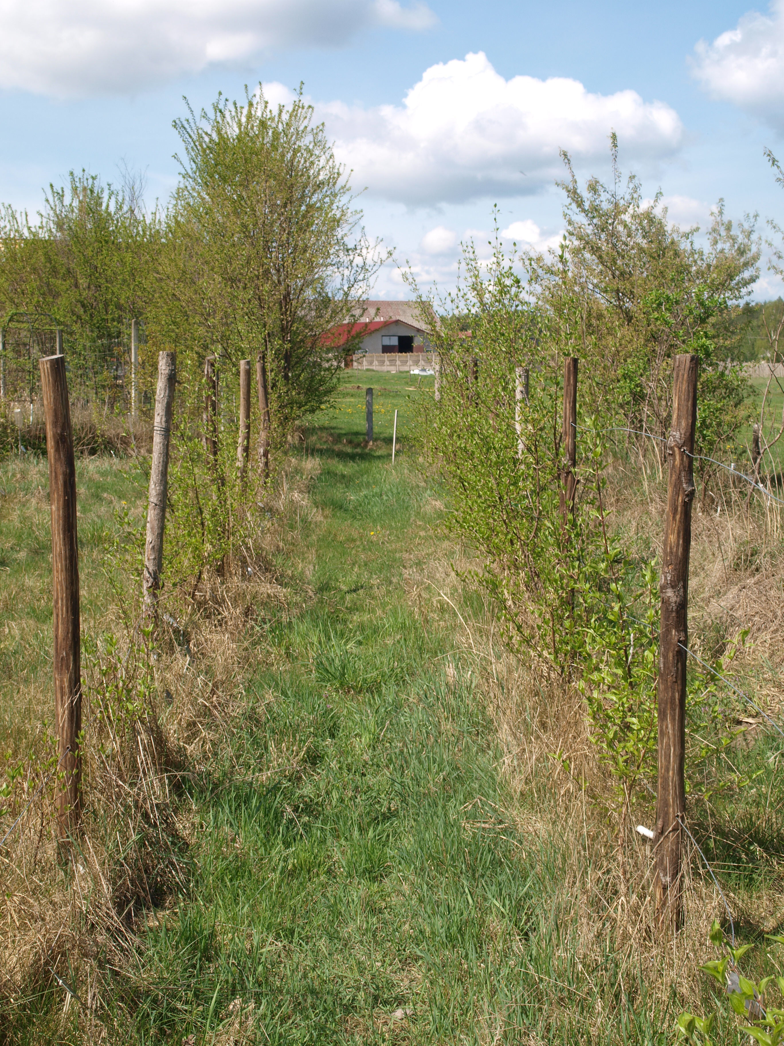 Jesienią 2015 r. postawiono północno-wschodni narożnik wysokiego o dwa metry szpalera otaczającego środek pola. Na tym najniższym miejscu, ziemia latem nie wysychała. Sadzono tam aktinidie i akebie, które potrzebują więcej wody niż pozostałe rośliny. Do końca 2015 r. szpaler został przedłużony w kierunku stodoły, otaczając zaciszne miejsce na uprawy polne.
